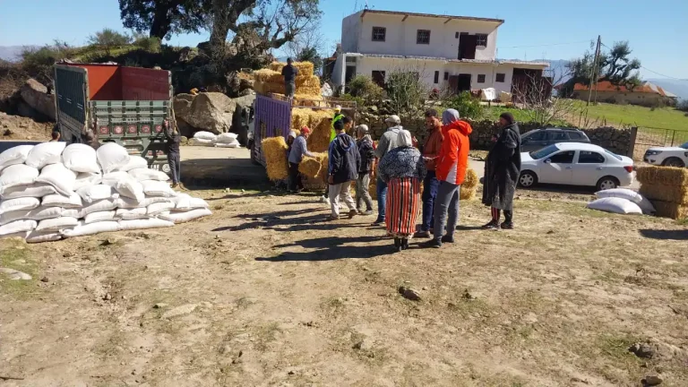 وتم تخصيص قنطارين من الأعلاف لكل مستفيد، في خطوة تروم دعم الكسابة ومساعدتهم على الحفاظ على مواشيهم.